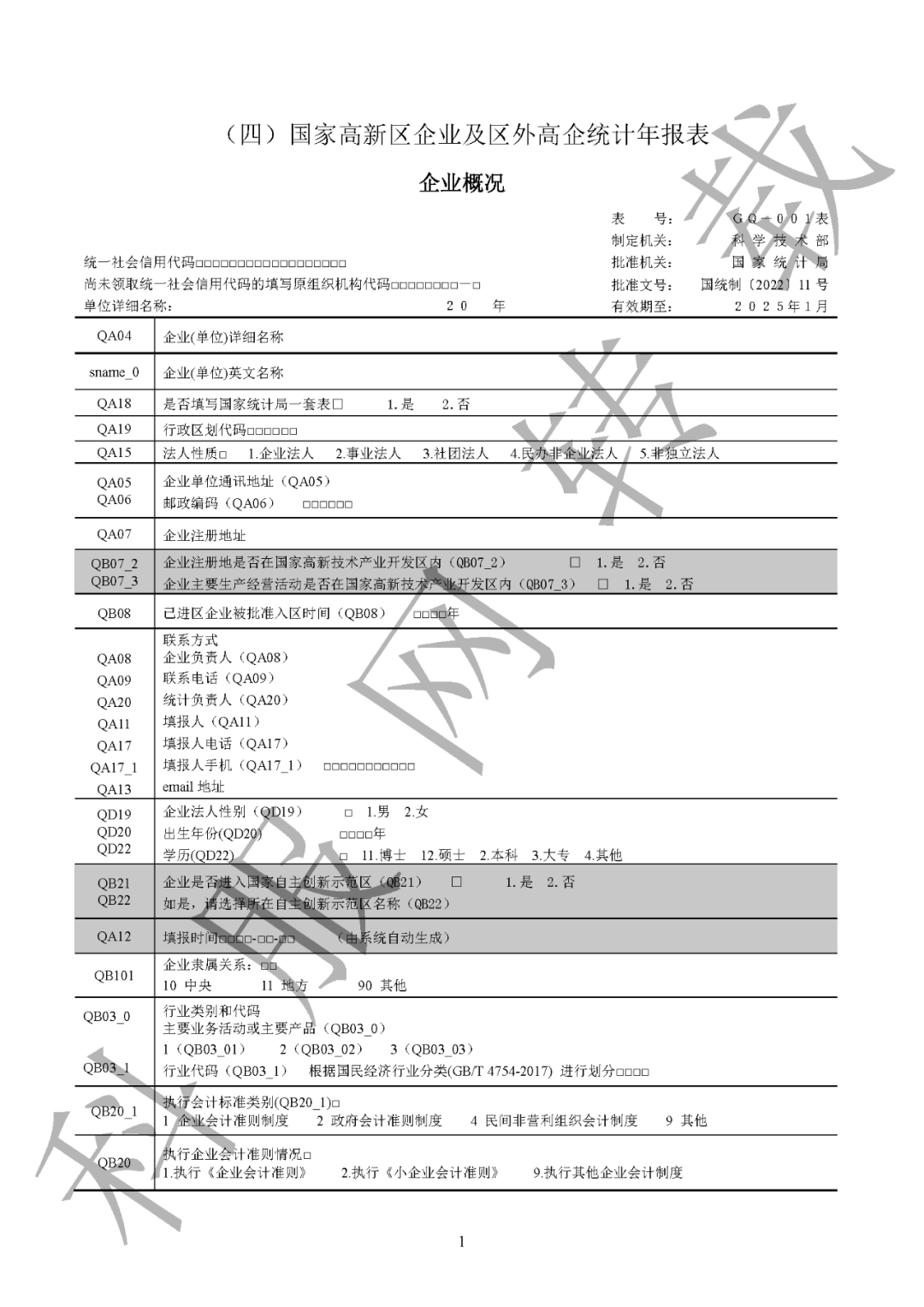 1-1(一)國家高新區(qū)綜合統(tǒng)計年報表