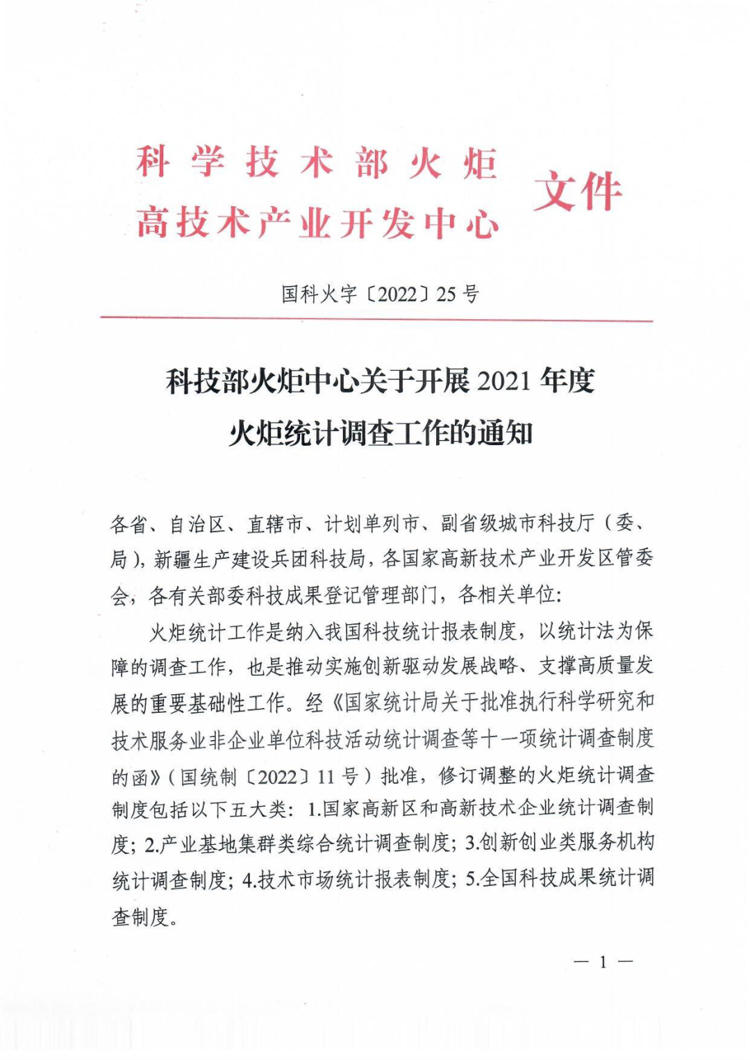 1. 科技部火炬中心關(guān)于開展2021年度火炬統(tǒng)計調(diào)查工作的通知