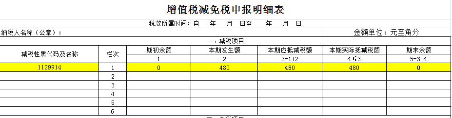 1、《增值稅減免稅申報明細(xì)表》:
